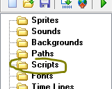 1. Idite do levog dela prozora Game Maker razvojnog okruženja i pronađite Scripts.
