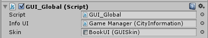 Napisao sam skriptu koja će prikazati jedan GUI prozor kada korisnik klikne na bilo koji grad. Skripta se nalazi u Game Manager objektu kao posebna JS skripta nazvana "GUI_Global".