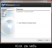 >> Ukoliko su infekcija/e pronadjene, proveriti da li je obelezena opcija 'Create Restore Point' i klikni na dugme Cleanup! da bi uklonili pretnje.