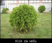 Slikao sam tuje pored jedne škole, pa mi recite o kojim tujama se radi. Veličina je oko 1 m ( i visina i širina). Sviđa mi se ovaj loptasti oblik, jedino što bih na njima promijenio je da su malo gušće. Da li postoji neka vrsta tuja koja je loptasta kao ova, a da je malo gušća? Iskombinovao bih 3-4 ovakve tuje (ili gušće ako postoje) sa dva čempresa koja sam već posadio.