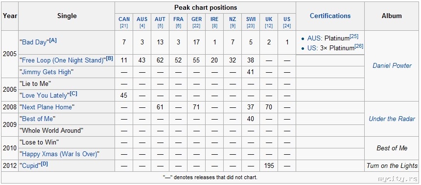 U decembru 2009. godine, "Billboard" ga je proglasio jednohitašem. Jednohitaši su oni čiji "drugi pokušaj" nije ušao u Top 25, a "Bad Day" je jedini njegov singl koji je uspeo da uđe u top 100.