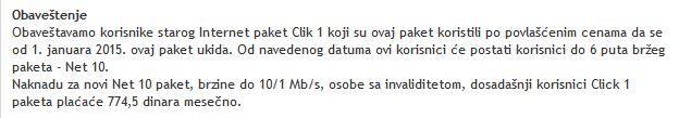 Meni su rekli, ako ispunjavam uslove, znači da je digitalna centrala i da nisam dvojnik (mislim da toga više i nema u Srbiji, možda i grešim), da ću imati net brzinu 10/1. Što im se tako zove paket?