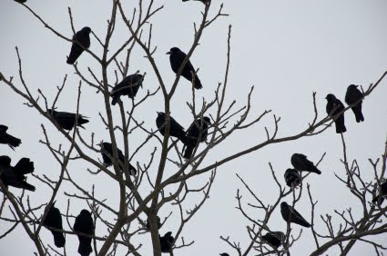 A group of crows is called a “murder.” There are several different explanations for the origin of this term, mostly based on old folk tales and superstitions. For instance, there is a folktale that crows will gather and decide the capital fate of another crow.