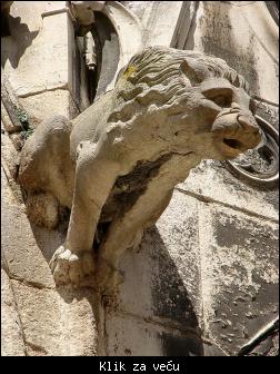 In architecture, a gargoyle is a carved stone grotesque, usually made of granite,[1] with a spout designed to convey water from a roof and away from the side of a building thereby preventing rainwater from running down masonry walls and eroding the mortar between.