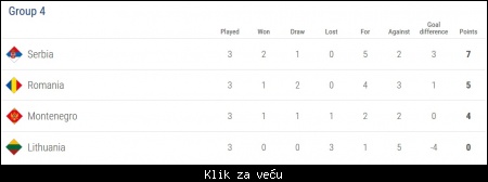 Вечерас касније Румунија се састаје са Литванијом, након чега ће много тога бити јасније. У овом тренутку сигурно је само да је Црна Гора испала из комбинација за прво место у групи...