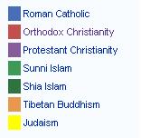 *Anglikanizam: u Ujedninjenom kraljevstvu sa manjinama u Irskoj i Malti (preko turizma).