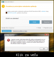 Skidao sam 5, 6 instalacija sa razlicitih sajtova i uvek mi ovo izbaci, dok se instalira izbacuje mi antivirus da je nasao neki fajl, ali ja ga zanemarim i nakon instalacije ovo mi izlazi, kada idem ok i zanemarim ponovno sta mi antivirus objavi, pojavljuje mi se ovo
