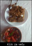 Данас, тачније већ јуче: релативно јефтино паковање ражњића из Идеје, пар паприка, главица лука, мало вина и зачини, пиринач.