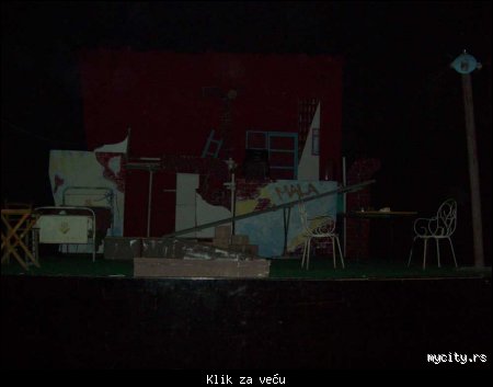 O predstavi nekoliko reči, a prikaz sledi kasnije: oseća se hendikep izuzetno teških uslova za rad i više nego skromne tehničke podrške. Reditelj je odlično pročitao tekst i uputio ansambl u sve dramske pravce, ali je realizacija bila nedovršena . Pošto smo svi , uglavnom, na ovoj temi iz pozorišnog sveta, da to opišem najrazumljivijim jezikom - ''fale im još dve jake probe''. S obzirom na to da će je oni ubrzo ponovo igrati, eto prilike da se dosta toga pritegne. Treba uzeti u obzir i to da je ansambl bio svakako impresioniran i prisutvom veličina svoga grada, tako da je efekat premijere bilo upravo to - premijera nije predstava, već kulturni događaj. Na slikama koje slede možete videti delić te atmosfere sa kratkim komentarima tamo gde je potrebeno...