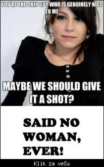 hej cko smanji malo obrtaje i nemoj se toliko zaletati. Žene jesu predivna bića koja treba maziti i paziti, ali su puno jače nego što mislimo. U nekim (mnogim) situacijama hladnije i jače od nas . Nisam za neke dripačke fazone! Možeš sa njma komunicirati, gledati se, vijati , čačkati/češkati, ali sve dok ne vidiš da je ona rešena nešto napraviti sa tobom drži sve sa debelom rezervom. Naravno bitno je i prepoznati trenutak kada treba nešto konkretno poduzeti. A one varijante umirem, volim te, ne mogu bez tebe zaboravi, sem ukoliko ih ne umeš šarmantno 'prodati'. Sve se uči u životu pa tako i procena kada treba reagovati, a kada ostati miran. Jednog trenutka se bacaju po tebi kako bi te kupile, a sledećeg kad je pitaš da se nađete može biti ono 'trenutno ne mogu' i ostale stjupirdarije. Pitanje je da li ona sama sebe zavarava. Kao sviđa joj se neko, pa kad se suči sa tom situacijom, ukoliko je dečko startuje, iz neke nesigurnosti/straha šmugne. Ne treba im to zamerati, pošto nisu one princeze, već obična ljudska bića koja lažu i govore istinu, kao što se plaše i umeju biti hrabre.