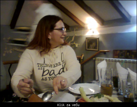 Zapravo, stolovi su bili na G, i sa levom stranom nisam uspela da nešto komuniciram. Prosto, nemoguće je odvojiti vreme za sve, ali sam ipak zadovoljna...Ipak sam sa većinom uspela da se našalim i da porazgovaram....