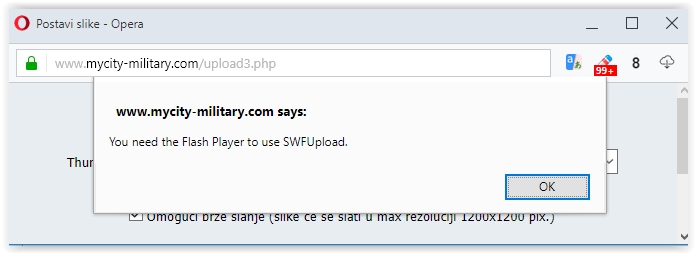 Da, ostao sam dužan pojašnjenje u vezi delimičnog rešenja problem - dakle, problem je počeo prvobitno na vojnom delu foruma.Vidim danima neće da radi upload i ja odem na opšti deo i tu je radilo ali veoma kratak period.Takođe i na tech delu, ali to više ne "fercera".