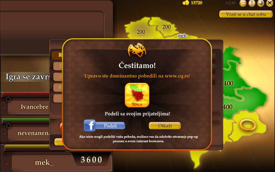 Ono kad prvi put odigraš Conquiztador (igra na Burek forumu) i odneseš dominantnu pobedu Very Happy