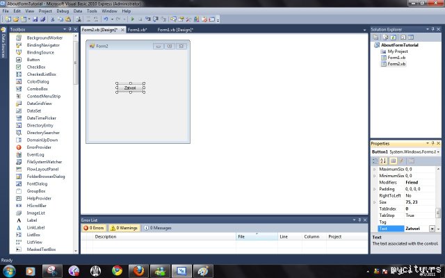 Na formi koju si upravo napravio dodas novo dugme i napises tekst koji zelis da pise na dugmetu.