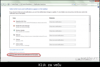 oblak ::Desni na taskbar>"propertejs">notification area>customize>pa podesi kako volis ovo treba da bude ODcekirano da bi bilo strelice....