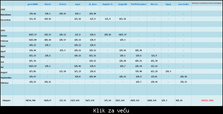 Evo i naše standardne tabele u kojoj je sumiran prošlogodišnji rad: