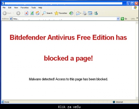 Ako naletite na neku stranicu na kojoj se detektuje malware dobiće te ovo obaveštenje.