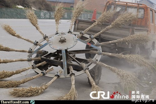 white trash repairs street sweeper in hubei china