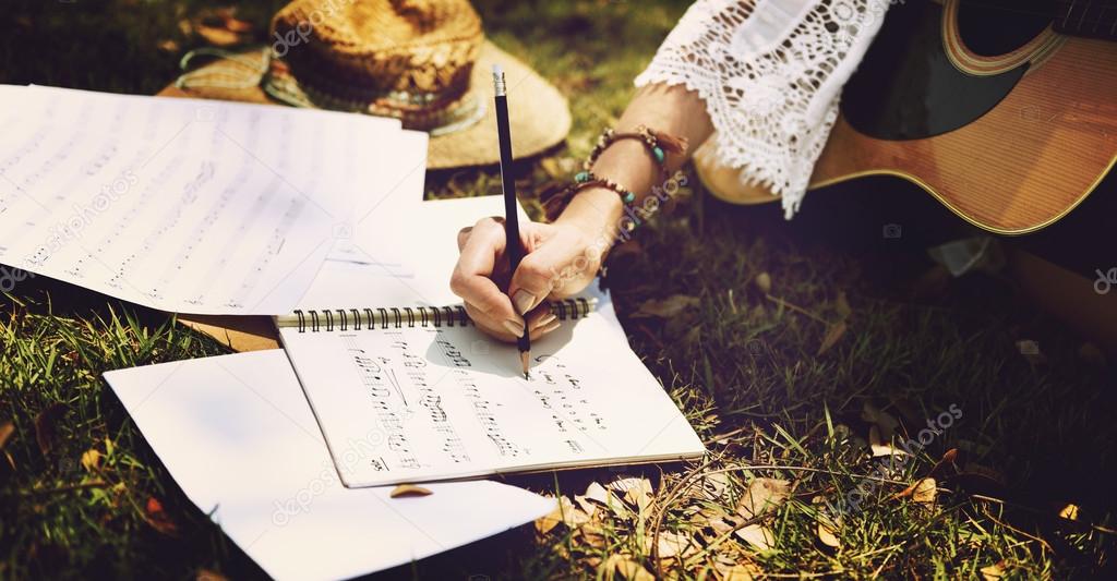 depositphotos 115863284 stockafbeelding meisje liedjes te schrijven in